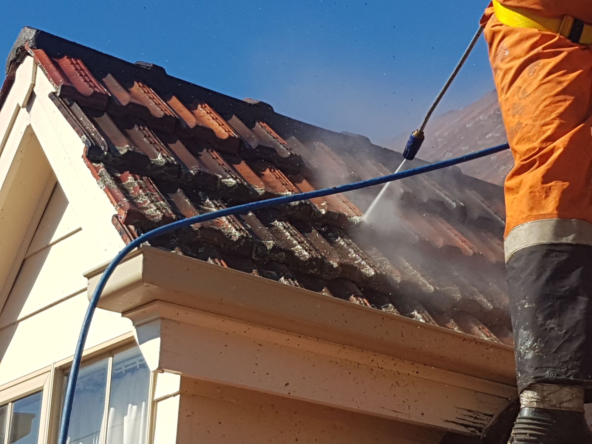 We start by cleaning the roof with high-pressure water jets to remove moss, dirt, and old coatings. This step is essential for a lasting finish, and it gets the surface ready for any repairs and protective coatings.